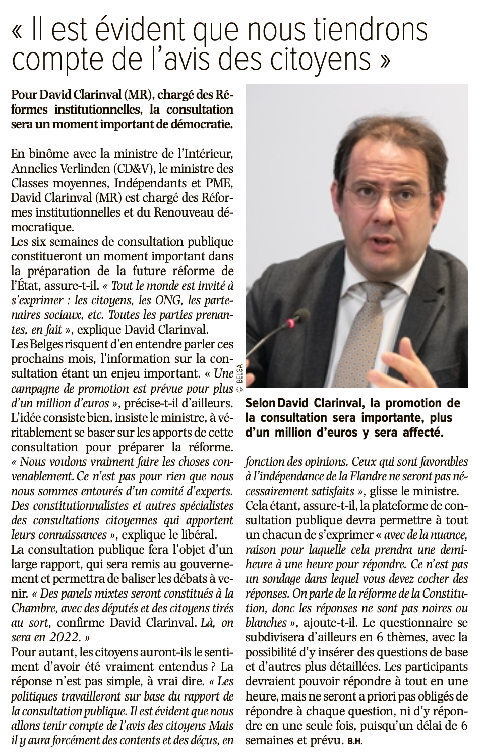 « Il est évident que nous tiendrons compte de l’avis des citoyens » L'Avenir - Lundi 23 aout 2021